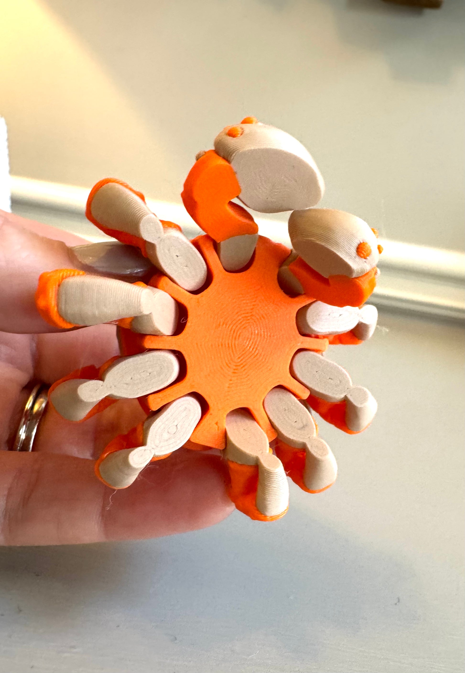 A cute little crab with articulating claws and legs. A cutie without the pinch!